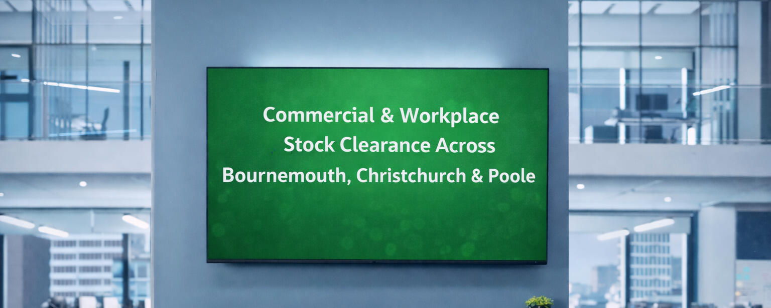 We work with local businesses, offices and commercial premises across Bournemouth, Christchurch and Poole to clear surplus workplace equipment.This includes:Meeting room and AV equipmentOffice IT hardwareSurplus stock and returnsEnd of lease office clearancesTechnology asset recoveryWe manage the process professionally, ensuring equipment is handled, assessed and resold responsibly.